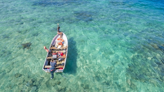 Banque Mer Lagon Mayotte Chira Lepoe Vue aerienne Drone Recif Barque