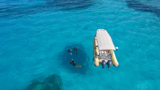 Bateau de plongée. vu de drone