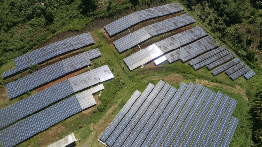 Banque Marc Mayotte Dzoumogné Panneau solaire Electricité Energie Durable Développement Photovoltaique Panneau Verte Vue aerienne Drone panneaux
