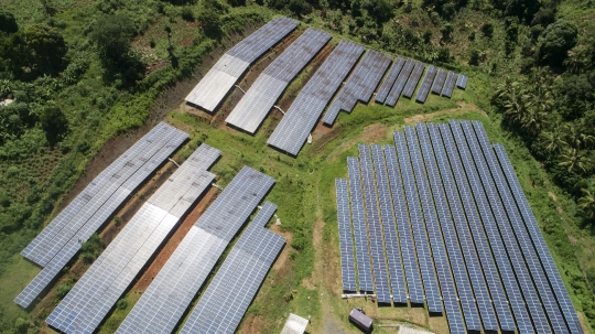 Banque Marc Mayotte Dzoumogné Panneau solaire Electricité Energie Durable Développement Photovoltaique Panneau Verte Vue aerienne Drone panneaux
