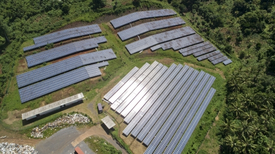 Banque Marc Mayotte Dzoumogné Panneau solaire Electricité Energie Durable Développement Photovoltaique Panneau Verte Vue aerienne Drone panneaux