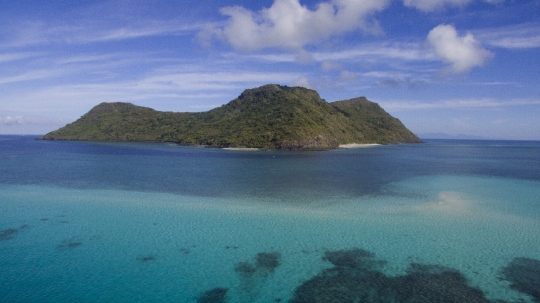 Ilot Mtsamboro et sable blanc vus par drone