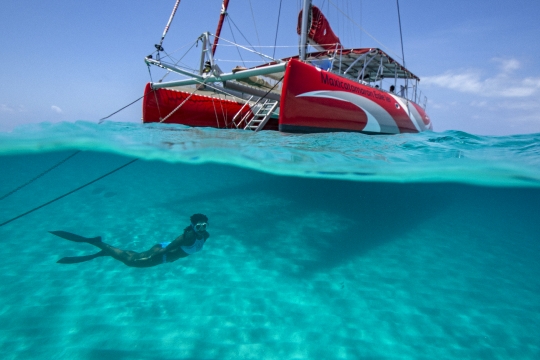 Banque MTsamboro Mayotte Marc Bateau Catamaran Mouillage Eole Nageur Nageuse Apnee Modèle