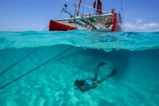Banque MTsamboro Mayotte Marc Bateau Catamaran Mouillage Eole Nageur Nageuse Apnee Modèle