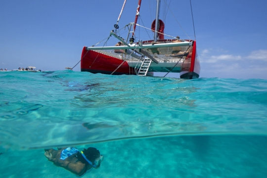 Banque MTsamboro Mayotte Marc Bateau Catamaran Mouillage Eole Nageur Nageuse Apnee Modèle