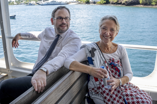 La premire ministre, le ministre de la sant et le ministre dlgu des Outre-mer dans lhemicycle Younoussa Bamana du conseil dpartemental Mamoudzou avec les lus mahorais et les institutions locales pour signer un contrat dengagement entre ltat et le conseil dpartemental.