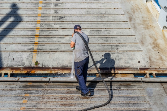 Mayotte STM amphidrome barge canon à eau nettoyage rincer