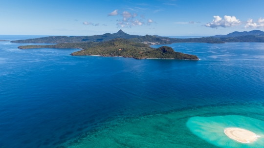 Vue aérienne ilot de sable blanc