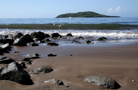 une vague sur fond d\'ilot de Bandrele