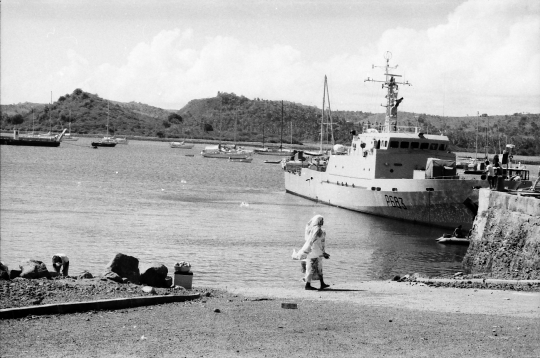 Banque Ancienne photos Noir et blanc Dzaoudzi Mayotte Jon Bateau Marine