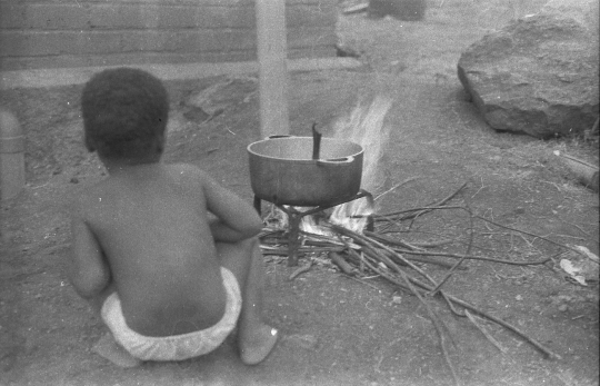 Banque Mayotte Jon Noir et blanc Ancienne photos Enfants Cuisine Marmite