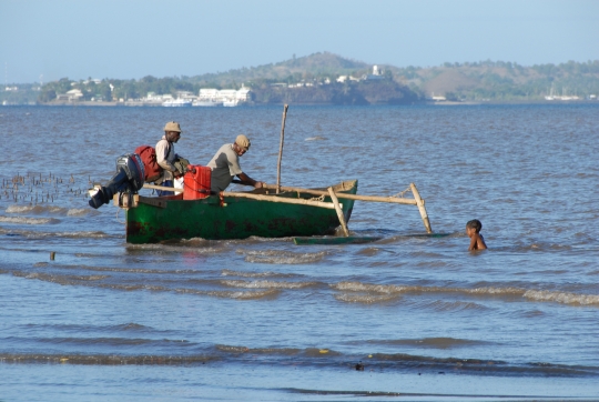 départ des pêcheurs, plage de Passamainty