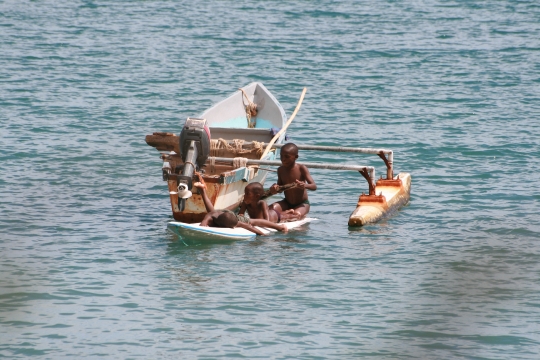 enfants sur pirogue petite terre