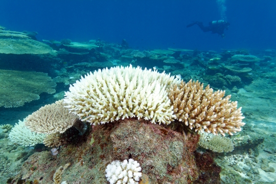 Blanchissement de corail dans le sud de Mayotte. Comparaison entre coraux sains et coraux blanchis