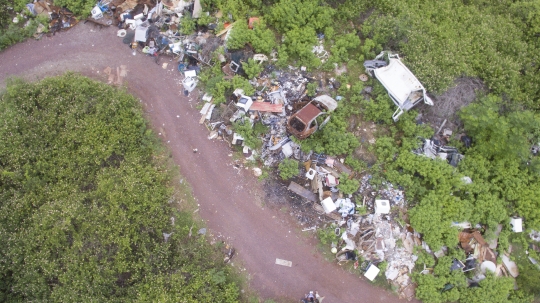 Décharge illégal sur le terrain municipal de Mbouanatsa. Vue par drone