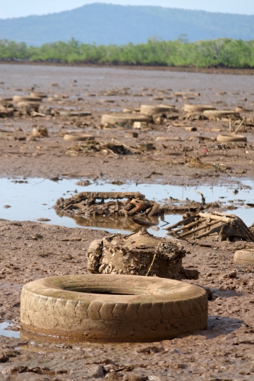 Mangrove de Doujani et déchets drainés par la rivière