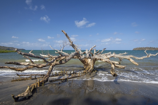 Plage de Mzouzia et palétuvier mort.