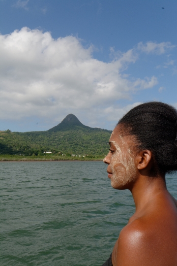 Symbole de Mayotte. Boueni maquillée en Mtinzano et mont choungui