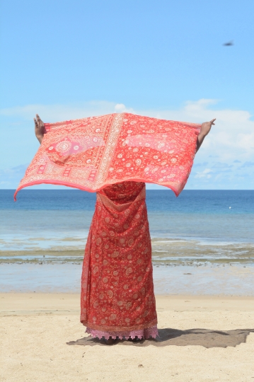 Tenue traditionnelle mahoraise sur la plage de Ngouja