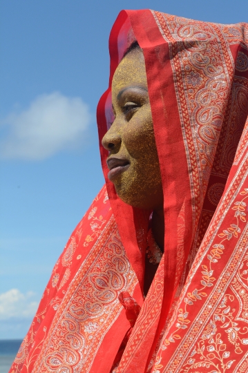 Tenue traditionnelle mahoraise sur la plage de Ngouja