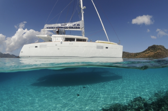 Alamandas boat, catamaran de luxe. Ilot de sable blanc