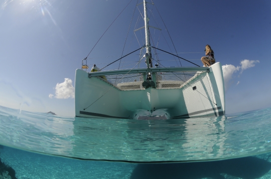 Alamandas boat, catamaran de luxe. Ilot de sable blanc