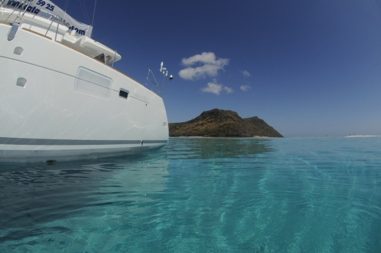 Alamandas boat, catamaran de luxe. Ilot de sable blanc