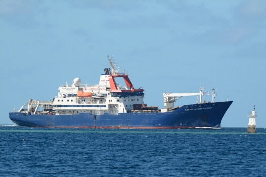 Le Marion Dufresne, bateau scientifique, au large de Handrema