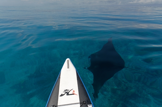 Rencontre et jeu entre Paddle et raie Manta