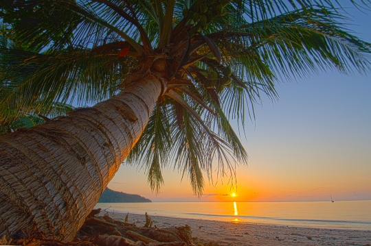 Banque Cocotier Coucher de soleil Lieux M\'Bouanatsa Marc Mayotte Mer Pays Photographe Plage