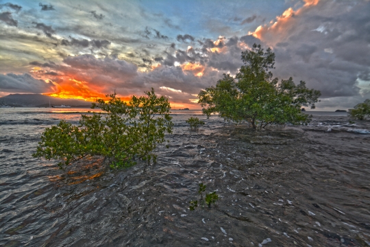 Couche de soleil de la vasière des Badamiers. Photo HDR