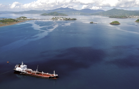 Banque Bateau Bruno Carburant Cargo Citerne Mayotte Petite terre Vue aerienne