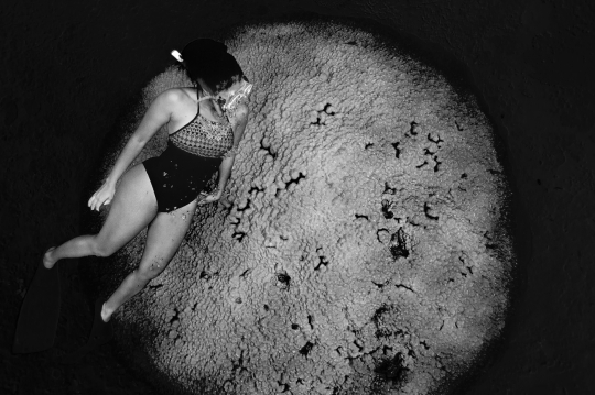 Nageuse au dessus de porites
