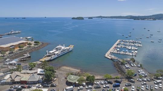 Banque Mayotte Marc Mamoudzou Vue aerienne Drone Port Barge Quai Marina front mer
