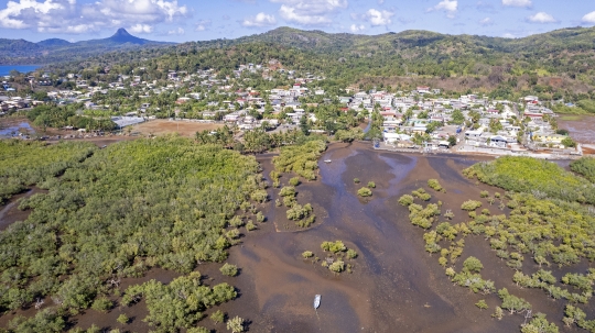Banque Bandrele Mayotte Marc Vue aerienne Drone Village Commune Front de mer Littoral Mangrove