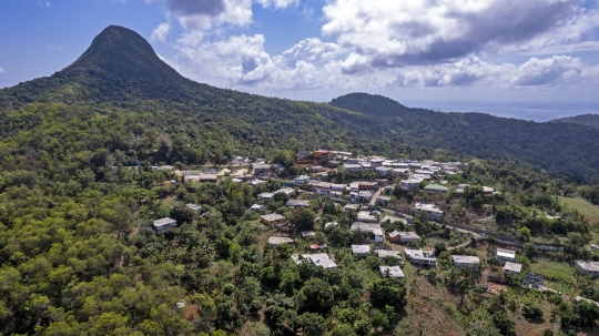 Banque Choungui Marc Mayotte Vue aerienne Drone Mont Village Commune