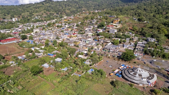 Banque Tsararano Mayotte Marc Agglomération Ville Village Urbanisme Urbanisation Commune Vue aerienne Drone Rond point marché